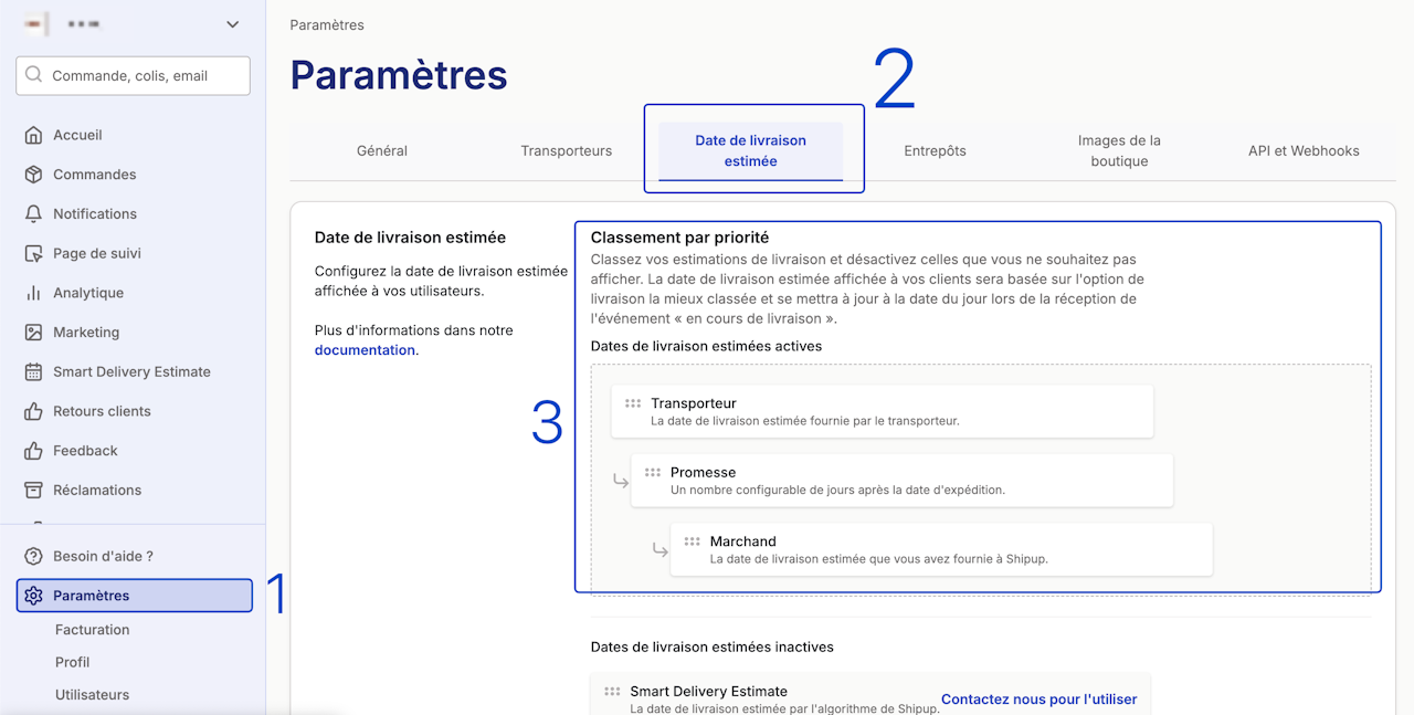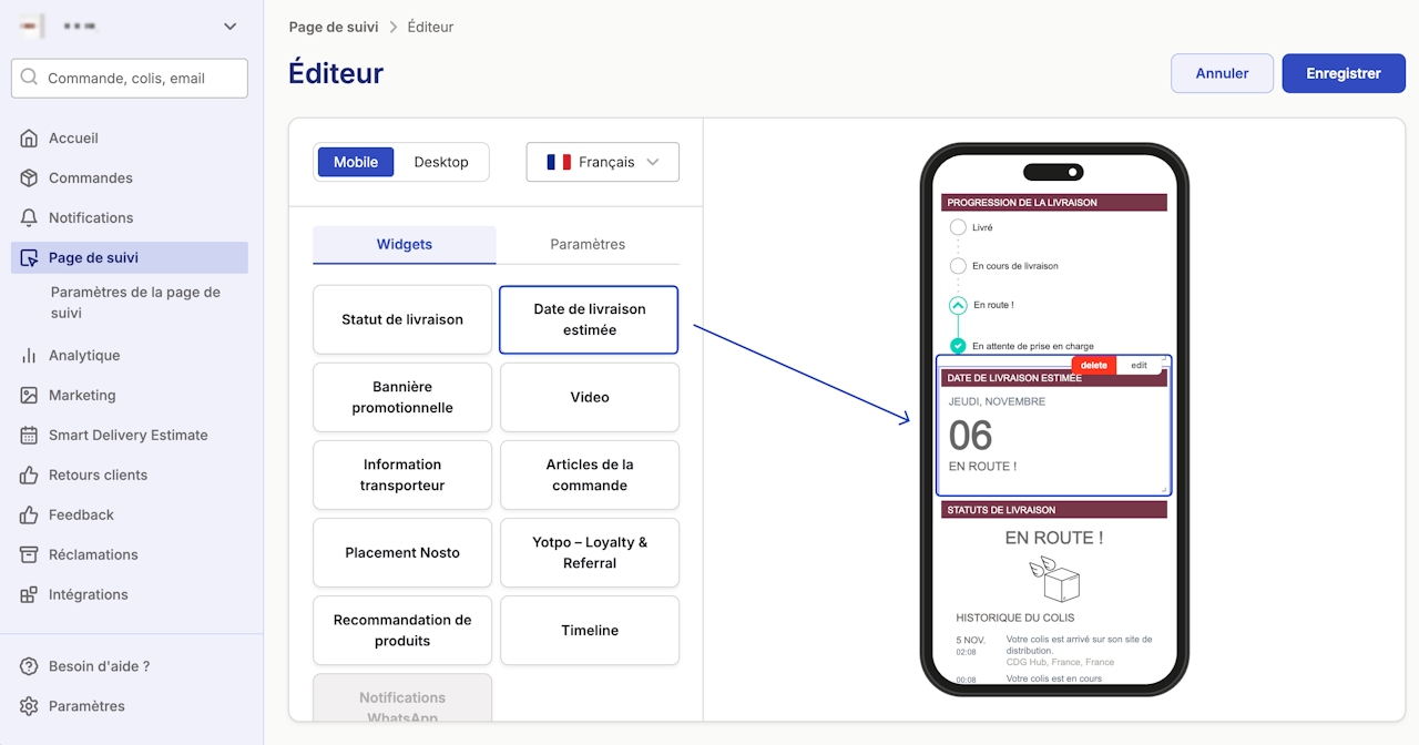 To improve the quality of information on the tracking page sent to your customers, you can now choose to display the delivery slot in :