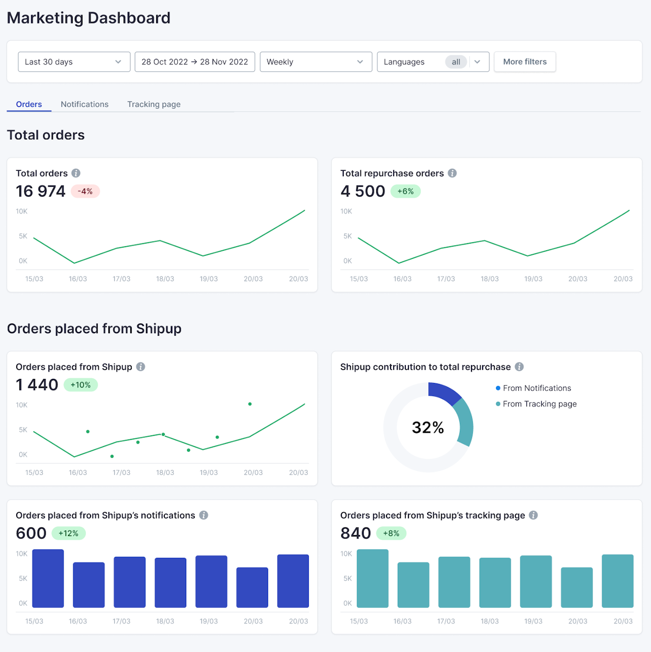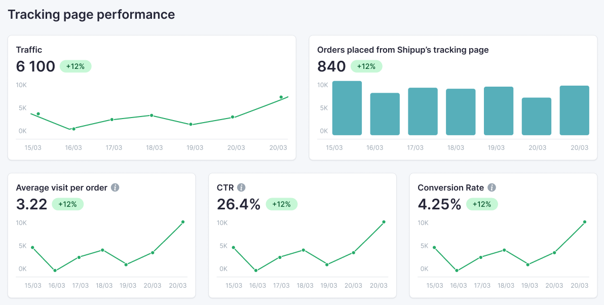 Orders placed thanks to our Tracking Page: Total orders placed following an interaction with Shipup's tracking page.