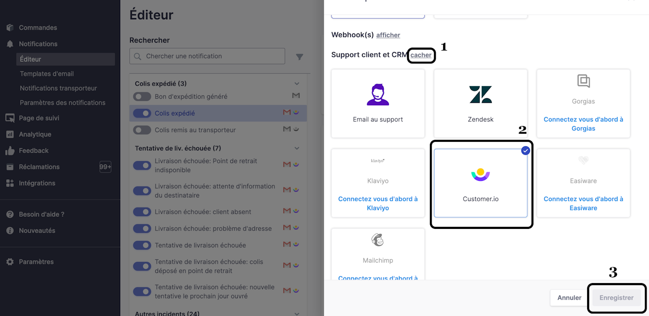 Activer Customer.io comme canal de communication