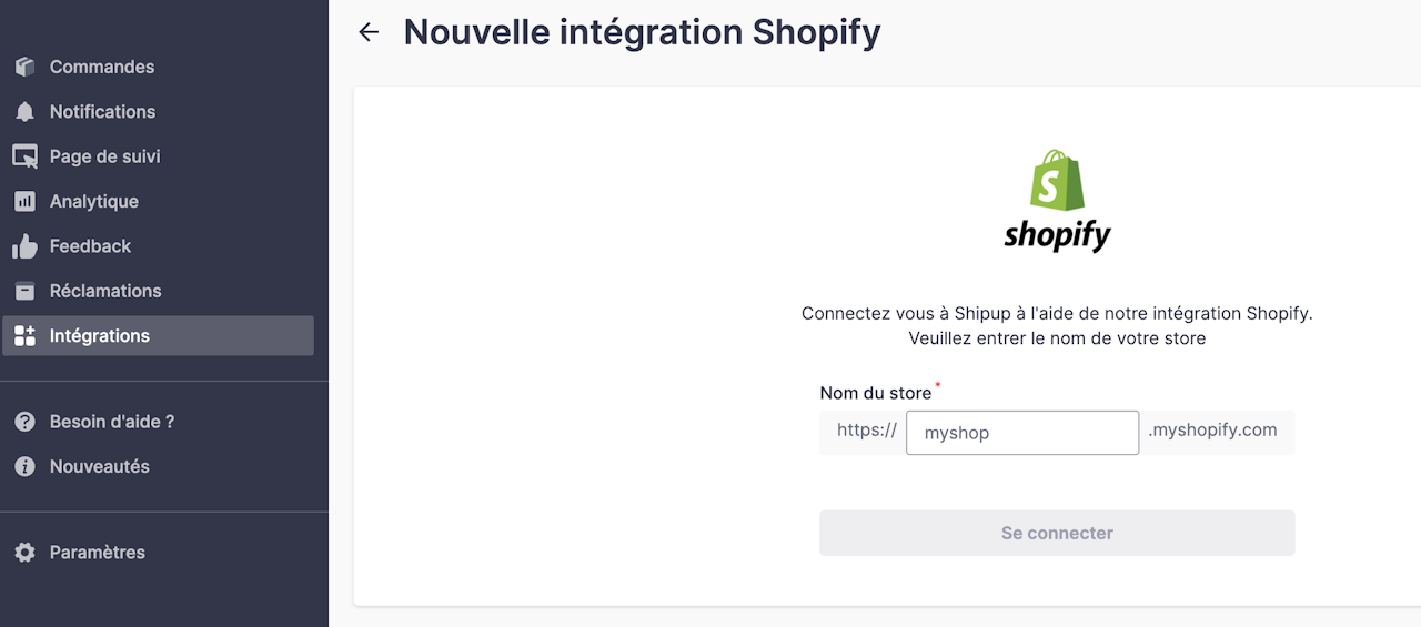 Entrez l'URL de votre boutique et cliquez sur "connecter"