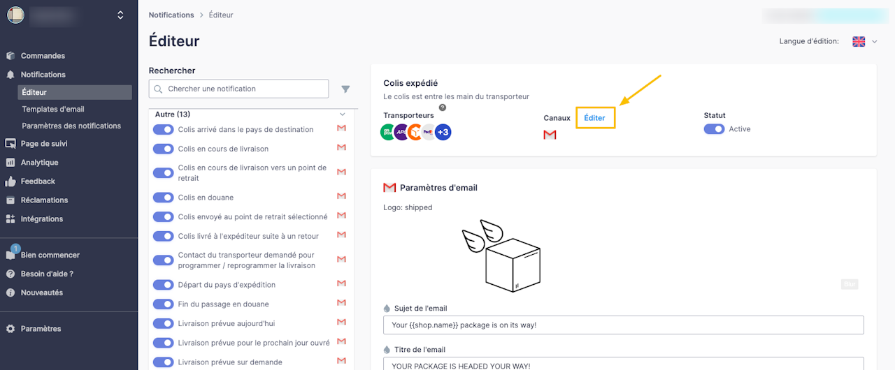 Dans l'onglet "Éditeur" (Notifications), en cliquant sur "Éditer" au niveau de "Canaux (voir l'image de gauche).