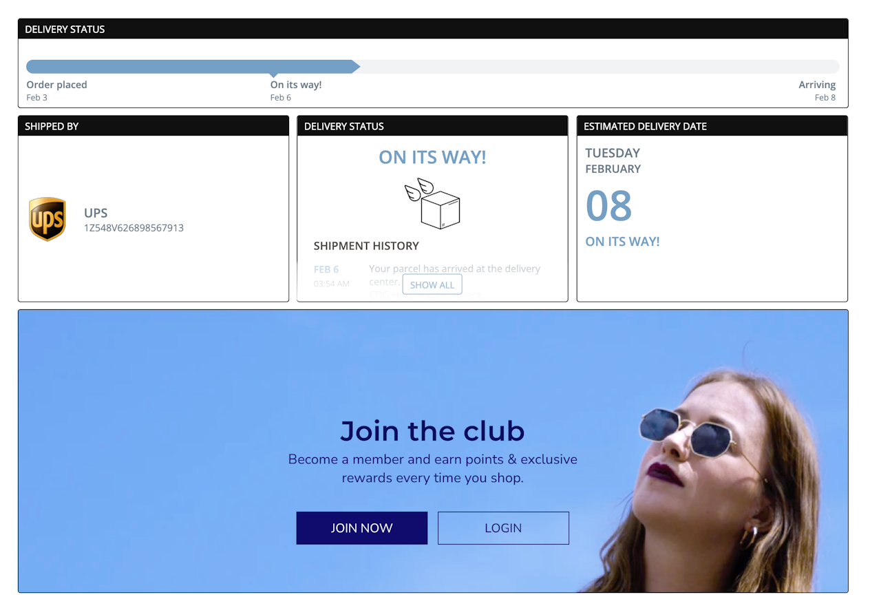 En moyenne, un client visite la page de suivi plus de 3 fois par commande. C'est l'occasion d'améliorer la performance de votre programme de fidélité en le poussant dans votre page de suivi :